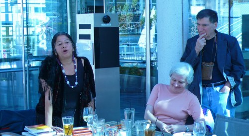 Far from the dust of the San Francisco dump, renowned Amercian poet Lorna Dee Cervantes read her work. Lorna describes her emphatic and resonating HCR performance in her blog and includes some sound advice for next year’s heretical organisers: “I’ll be performing poetry for the 13th Heretical Consumer Research Performance gathering today in San Francisco where Basquiat meets Baudrillard in the dump, Beuys meets the Fortune 500 on the run and Frida will not appear this afternoon for lunch at noon at the B Restaurant, upper terrace of the Yerba Buena Gardens on Howard across from her inimitable much imitated display. It will be a heretical happening. (What ever will I wear?). ……..For their 14th, they ought to invite the found puppet genius, Liebe Wetzel and her Lunatique Fantastique.”